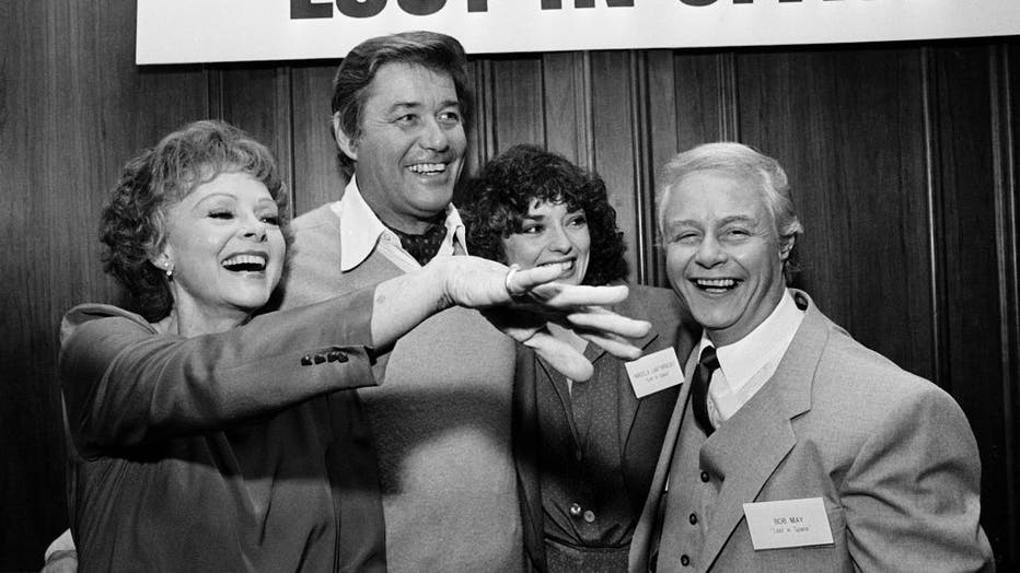 Cast members from ‘Lost In Space’ (L to R): June Lockhart, Guy Williams, Angela Cartwright and Bob May joined other television stars from 1960’s and 1970’s during luncheon gathering at Century Plaza Hotel, April 13, 1983 in Los Angeles, California. (
