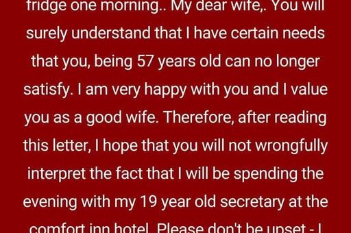 My dear wife,You will surely understand that I have certain needs that you, being 57 years old can no longer satisfy. I am very happy with you and I value you as a good...